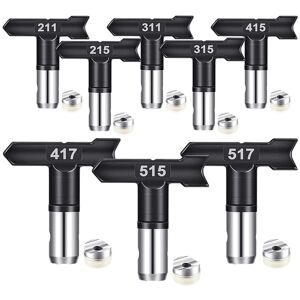 Body Compatibility: The airless sprayer switch tips are perfectly compatible with most airless paint sprayers, such as for , . Depending on the size of the aperture, the range be different. Unique Design: The reversible airless sprayer tip Switch Tip is designed for wide surfaces and materials like solid color stains, enamels, primers, interior paints, paint and primers, and exterior paints. Widely Use: The switch tips compatible with most major airless , can be applied for home decoration, painting and industrial fine painting and decoration, etc.; They make the preparation of the , painting and other coatings and cleaning after painting more easier. Easy to Use: The Paint Sprayer Nozzle tips are easy to install on without tools, fast and easy to clean, simply rotate the nozzle to wash. Strong and wear-resistant, easy to clean, and can be applied for a long time Colour: Black Material: Metal+Plastic Package Contents: 8 x Airless Nozzles Tips (211, 215, 311, 315, 415, 417, 515, 517)