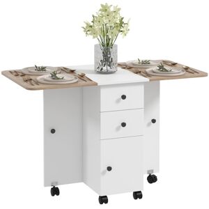 A centrepiece for lunches and dinners, with with little space - this HOMCOM drop leaf table. The two drop leaves take the table from seating two people, to four. The particle board structure makes this a sturdy piece, in a classic and beautiful wood-effect finish. With a melamine coating for a smooth and lightly protective finish; complete with a drawer and two shelves for handy storage. HOMCOM Folding Dining Table, Drop Leaf Dining Table with Drawer in Light Oak