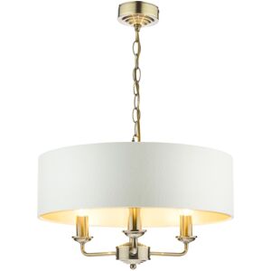 The Laura Ashley Sorrento is a subtle and sophisticated 6 light ceiling pendant. The light features a single contemporary drum shade in sleek ivory silk-effect fabric with a pearlised inner. A hanging chain falls from a round, Art Deco style, stepped ceiling rose. This 6 light pendant ceiling fitting comes in a traditional warm antique brass finish, adding grown-up atmosphere to your dining or living area. The fitting has a matching finish ceiling rose and hanging chain plus a coordinating gold cable. FEATURES * Ceiling pendant light * Antique Brass finish * Ivory faux silk shade * Takes 6 lamps * Class 2 (double insulated) * Dimmable with suitable lamp / dimmer switch * Height adjustable at the point of installation SIZE: * Drop: 45-88 cm * Diameter: 55 cm BULBS * Requires 6 x 40 watt max Small Edison Screw Candle Lamps (not included) * Ideal for use with LED lamps