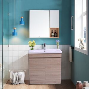 This high quality floor standing basin vanity unit offers a fashionable and unrivalled storage for your bathroom, it features a durable ceramic basin which looks practicality and great ,this modern design sink unit is a perfect addition to compliment any bathroom. All of NRG vanity cabinet sink unit furnitures come with manufacturer-leading 10 year guarantee. Features -Oak finish. -Soft closing double doors. -Spacious internal storage. -Single tap hole ceramic basin. -Fully assembled(Other than Basin). -Floor standing. -10 year guarantee. -Dimensions: (W x D x H): 815 x 400 x 840 mm -Tap & waste are not included. Note:Please note that the actual colour of the item may be slightly different as shown on the photos. The P&P is only for those addresses in Mainland England.A surcharge will apply to the remote areas .