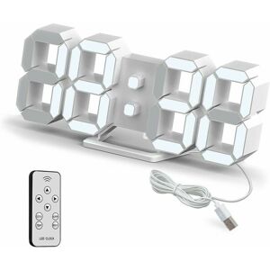 With large 3D LED digit, you can read the real time in a long distance. With 54 LED Light Beads. Can remote view, no blue light. This alarm clock has 12/24 Hour Display. It has notches on the back for mounting, stand is removable, can be easily hung on the wall as a wall clock, or place it on the desktop arbitrarily. Simple and compact design with novelty shape, fits well in any modern, industrial or contemporary environments. NOTE: The alarm is still a little bright even in night mode. We do not recommend that the people who are sensitive to light put it in the bedroom. The alarm clock can only work with power connected . It can be connected with USB cable or AC adapter. USB cable is equipped with the alarm clock when ship Adjustable Brightness with 3 intensity levels to accommodate different needs. It is a fantastic Christmas gift for children or teens.