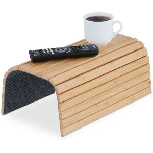 This bamboo sofa tray transforms your sofa back into a handy storage surface for drinks, snacks, remote controls, mobile phones, tablets and more. The armrest table with fold-out legs simply clips onto the armrest. When not in use, sofa butler folds away to save space. The natural bamboo with its attractive grain is decorative and blends well with a variety of interiors. Sofa tray in detail - Dimensions unfolded H x W x D: approx. 13 x 35 x 26.5 cm - Folded dimensions H x W x D: approx. 4 x 35 x 24 cm - Max. Load capacity: 10 kg - Weight: approx. 1.1 kg - Material: Bamboo - Colour: Natural Armrest table for the sofa - Creates practical storage space on sofa and armchair - Ideal for drinks, snacks, remote control, mobile phone and much more - Simply clamp onto the armrest thanks to side sections with spring mechanism - Backrest tray with folding legs can be stowed away to save space - Couch organiser in an attractive design made of natural bamboo Included in delivery - 1x armrest tray