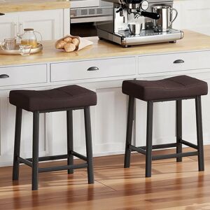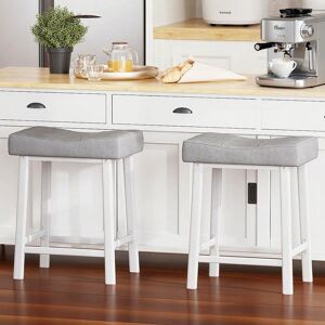 Specification: Size: Set of 2 Product Dimensions: 33cm D x 40cm W x 60.96cm H Cushion Size: 32cmD x 50cm W x 8.13cm H Style: Modern Material: Iron+PU Leather+Sponge+MDF Packing List: 2x Saddle Bar Stool 1 x Instruction Manual Lark Manor Finish: Black, Upholstery: Grey