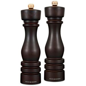 Season with confidence with the Cole & Mason London 22cm Chocolate Wood Gift Set. Comprising a salt and pepper mill and crafted from high grade, dark stained beech wood with a gold tone knob, these London mills are inspired by the beautiful, Art Deco and industrial British architecture that can be found throughout the city of London and honours both Cole & Mason's heritage whilst looking to the future with their classic, yet contemporary aesthetic. Their timeless design would make a stylish addition to both modern and traditional kitchens. The grind can be easily adjusted from fine through to coarse simply by turning the knob on the top of the mill. Select a fine grind for a big punch in soups and sauces or select a coarser grind for a subtler, but longer lasting taste - great for steaks and salads. The sharp, anti-corrosive ceramic grinding mechanism of the salt mill achieves a high-quality output and consistent milling, time after time while the design registered, Precision+ carbon