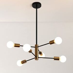 This chandelier light fixture is made of high-quality painted iron and electroplated aluminum, stable, anti-corrosive, and corrosion-resistant. The thickened ceiling plate is firm and durable, not easy to deform and wear, and easy to install. It could be fully dimmable when used with dimmable bulbs and a compatible dimmer switch to create the perfect atmosphere. (dimmer switch not included). Size: 33.5in/85cm(H) * 21in/54cm(W), 23.6in/60cm(Adjustable Height), 7.5in/19cm(Metal Rod), 4.72in/12cm(Canopy Diameter). Bulb Requirements: Fit for E27 lamp base. Compatible with LED, Edison, CFL, halogen, or incandescent bulbs. (Bulb not included). Custom Height: The hanging length of this Sputnik chandelier can be adjusted according to your needs. The connecting rod to install bulbs can be rotated horizontally. UL certification, Safety, and Durability: UL certification has excellent quality and safety. Brushed copper and black paint finishes can match well, and Gold & Black Sputnik Chandeliers, with a durable swivel, could be mounted on vaulted or angled ceilings. Attention: Before installing the slope-mounted pendant light, please make sure the height is set and the base is fixed in a firm place (safety first). So it's cool. Easy to Install: The Sputnik chandelier lamp's mounting hardware and installation guide comes in a package. All arms are pre-wired and pre-threaded for easy and quick installation. Just install suitable bulbs into connectors and fix the plate on the ceiling. George Oliver