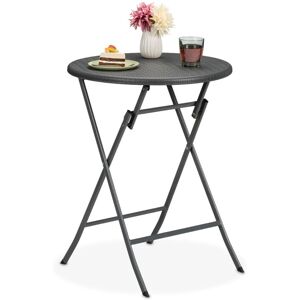 If you want to savour the garden season to the full, this garden side table is a must. Several people can sit together comfortably at the round table, barbecue or drink coffee. With its modern look, the outdoor table is also perfect for your balcony or patio. The chic rattan look is a subtle eye-catcher and can be combined in a variety of ways. Made from easy-care plastic and robust steel, the folding table is particularly durable. Garden table in detail - Dimensions H x D: approx. 75 x 60 cm - Folded dimensions H x W x D: approx. 96 x 60 x 6.5 cm - Max. load capacity: approx. 60 kg - Weight: approx. 4 kg - Material: Plastic, steel - In various colours Round outdoor side table in rattan look - Ideal as a small dining table for up to 4 people - Fits perfectly in the garden, on the balcony or terrace - Round table top in rattan look creates a modern look - Robust steel frame ensures stability and stability - Can be easily folded away to save space - Garden dining table made from
