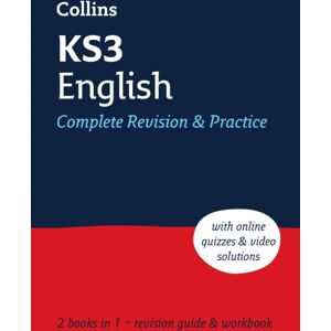 Level: KS3 Subject: English Complete revision and practice covering the KS3 course This all-in-one KS3 English study and practice book is your one-stop shop for KS3 English!Excellent value for money, it combines a full revision guide and workbook in one book. Clear and concise revision notes, plus seven practice opportunities for every topic.For even more practice QR codes link directly from the topics in the revision guide to online interactive quick recall quizzes and to worked solution videos in the workbook. quick tests to check understandingend of topic practice questionstopic review questions later in bookmixed practice questions at end of bookonline quick recall quizzes for every topiconline video solutions for every topicfree Q&A flash cards to download onlinemore topic-by-topic practice and mixed practice questions in the added workbook!now with free – visit collins.co.uk/s and follow the step-by-step instructions