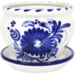 Add a pop of colour to your garden with this stylish blue floral bola plant pot and matching drainage plate. The contemporary floral pattern is perfect for adding a touch of modern style to any garden, while the sturdy ceramic material ensures that your plants will stay healthy and happy. With its unique shape and beautiful pattern, this bola plant pot are sure to turn heads and become the focal point of your garden. Latitude Vive