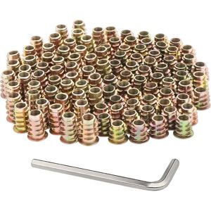 Product Description: --High precision hex socket threaded insert nuts provide a threaded socket for a wood workpiece, Ideal for furniture installation and woodworking, are replaceable the threaded nuts where the wood screw hole is broken. --These insert nuts are inserted into a pre-drilled hole by screwing, in this case the external protrusions bite into the wood, preventing the nut from turning or pulling out. --Wood Threaded Insert is suitable for carpenters, repairers, homeowners to repair cabinets, floors, wooden toys, construction and other cork, fiberglass< br/> --Wood screw nut designed by self-tapping, contributes to knocking, with good resistance to stretching, can effectively prevent, pulled out due to torsion or vibration. : Material: zinc alloy Size: M6*10 M6*15 Quantity: Each size 50pcs, total 100 Package includes: 50 six-pack nuts M6*10 socket head socket 50 M6*15 socket head socket nuts 1x M6 spanner Note: 1. First drill a good size hole with tools before installation,