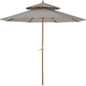Live the elegant way this season and beyond - choose Outsunny sunshades for garden. Using poplar wood for the main structure, the warm brown colour works in hand with the grey top, creating a beautiful look which is nicer on the eye than standard metal. The wood is tough and durable so it can be used all day long, with eight bamboo ribs connecting the canopy to the pole for extra strength. Crafted into a two-tier design which lets air in and out, helping to reduce any wind-build up underneath. Features: Strong and resilient bamboo ribs for large garden umbrella's extra strength Brown and grey colourway is beautiful - it's suitable for all private garden and outdoor areas Brass accents for extra sophistication, including the crank handle Easy to open and close Two-tier canopy keeps you protected from light/mild weather and UV rays Base not included, assembly required Specification: Colour: Grey+Teak Material?Bamboo, poplar wood, polyester cloth Overall size:?2.7x2.6Hm Bamboo rib size: 21x11mm Pole diameter:?38mm Umbrella cloth: 180g/? waterproof polyester cloth Gross weight: 9kg Net weight: 8kg Custom label: 840-025GY Note: Umbrella stand not included please do not leave the umbrella open in unfavorable weather conditions Package Includes: 1 x Parasol 1 x Manual