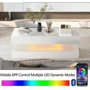 Description: LARGE CAPACITY The LED High Gloss Coffee Table is a modern and stylish piece of furniture that is ideal for use in offices, stores, and living rooms. It features a high-gloss white finish that adds a touch of sophistication to any room. HIGH QUALITY MATERIAL Its size measures H100 x W50 x D39cm,made from E1 grade particle board, the coffee table is sturdy and durable, ensuring long-lasting usage. LED LIGHTS One of the standout features of this coffee table is its 16-color LED lights. Our white coffee tables controlled by phone, multiple colors and modes for you free to choose, make your life relax and exciting in a romantic atmosphere. DURABILITY To ensure stability, the coffee table comes with a non-slip mat that helps prevent it from moving around on smooth surfaces like polished floors. This feature also makes it safe and secure to use in any setting. ABOUT PRODUCT Easy to clean with a damp cloth and mild detergent. Wipe with a clean cloth.The coffee table