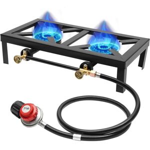 Description With its two simple gas control knobs and dual burners, this gas camping stove is up to almost any cooking task and s easy to use. The spacious hob can accommodate a wide range of pots and pans. After a simple assembly, all you need to bring is a gas canister(not included) and you're ready to enjoy a wonderful camping picnic. 🌭【 HIGH EFFICIENCY 】Each of the two powerful burners has a maximum power of 8000W(normally 6800W), ensuring sufficient firepower for camp cooking. 🌭【 ENJOY DIFFERENT DELICACIES 】The two burners with independent control knobs and the pressure regulating valve(0-10PSI) allow you to easily adjust fire power. You can cook different ingredients at the same time, saving cooking time and enjoying more delicious food. 🌭【 WIDE COOKING AREA 】The cooking surface(total of 18.90*9.84 inches) is large enough to place pots and pans of various sizes, very convenient and practical. Each burner has four boiler cradles to stably hold your pot in place. 🌭【 EASY TO