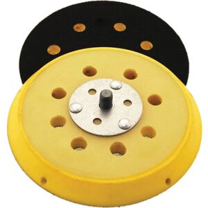 Dual action orbital sander pad. Super polyurethane replacement backing pads for random orbital sanders. Medium density, standard profile, with ultra tough fibreglass back plate. Made in Great Britain. Made of: Medium flexibilty. Surface:GRIP®.Holes:8 + 1 Holes E65.Thread: 5/16UNF + M8.Max RPM: 10,000.Additional Information:• Diameter (mm): 125• Pad Type: GRIP® - Tough Back Plate• Thread: 5/16 UNF