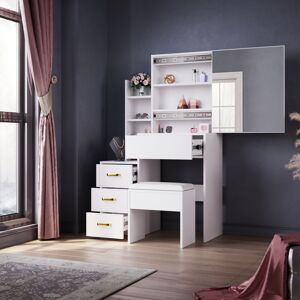 Founded in 2005, One of the biggest furniture online retailers based in the heart of West Midlands. With 10,000+ square meters of UK local warehouse. Known for elegant and innovative modern design and unmatched quality. Has served 500,000+ customers over the years, showing that ELEGANT is a trusted brand. Product Parameter Brand ELEGANT Colour White Dressing Table Dimension 90 x 38 x 132 cm (LxWxH) Dressing Table Weight 43.2 kg Material MFC Board 15mm thick Assembly required Yes Features: ⭐【 Space-saving Design 】- The mirror has a left and right sliding design, which not only makes it easy to use, but also hides extra storage space behind the mirror. ⭐【 Sufficient Storage Space 】- Designed with 5 storage drawers, it provides categorised storage space for easy organisation and storage of a wide range of cosmetics, skincare products and personal items. ⭐【 Secure and Confidential 】- The large drawer is equipped with a locking mechanism designed to provide users with a safe and secure