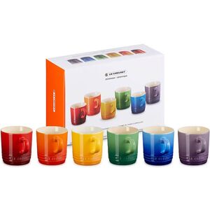 Part of Le Creuset’s vibrant Rainbow Collection, this set of 6 stoneware cappuccino mugs is the perfect way to enjoy your favourite frothy coffee in colourful style. With a 200ml capacity, they’re also ideal for serving other hot drinks and even small desserts. Whether you're treating yourself or gifting a coffee lover, this set brings a cheerful touch to every cup. Crafted from Le Creuset’s premium stoneware, each mug is made using specialist clays and fired at high temperatures for outstanding strength and durability. The dense stoneware ensures excellent heat retention and even temperature distribution, while the smooth enamel finish resists scratches and cleans effortlessly. This radiant set includes one mug in each of the following colours: Cerise, Volcanic, Azure, Bamboo, Nectar, and Ultra Violet. Le Creuset stoneware is safe for use in the microwave, freezer, fridge, dishwasher, oven, and grill. For oven use, maintain a minimum distance of 6.5 cm between the item and the heating element, with a maximum temperature of 260°C. Backed by Le Creuset’s 10-year guarantee, ensuring lasting quality and peace of mind. Capacity 200ml each.