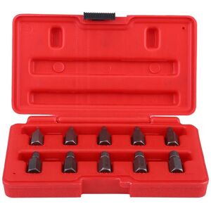 【Remove Broken Nails and Bolts】This screw extractor set is designed to remove broken nails and bolts. High Hardness and Wear Resistance: Made of high quality chrome vanadium steel, and processed by heat treatment, with high hardness and wear resistance. Reverse Spiral Design: Reverse spiral design for maximum grip, helps relieve your work. High Torque Applications: Recommended drill bit size (for location hole) engraved on each extractor, suitable for high torque applications. 3.2-10.3mm Different Size Extractors: This product contains 10 different size extractors from 3.2-10.3mm, to meet your repair work in different circumstances.
