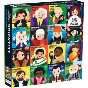 Mudpuppy's Little Scientist 500 Piece Puzzle is comprised of colorfully illustrated portraits of real people who have made a historical impact on the world with regard to science, including Albert Einstein, Marie Curie, and George Washington Carver.Illustrations by Lydia Ortiz introduce children to these important people in history with images that are fun for youngsters and also realistic.Mudpuppy puzzles are packaged in matte-finish sturdy boxes, perfect for gifting, reuse, and storage. -500 pieces-Complete puzzle: 20 x 20"-Box: 8 x 8 x 2"-Puzzle greyboard contains 90% recycled paper.Packaging contains 70% recycled paper. Printed with nontoxic inks. -Ages 8-99