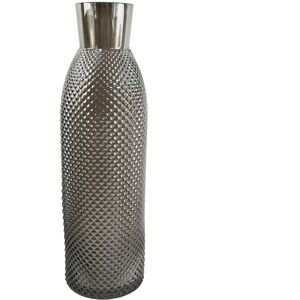 Smoke grey glass vase with diamond embossing. 50cm tall x 16cm x 16cm at widest points. The slightly narrower top rim measures 9.5cm diameter. Thick and high-quality glass vase. This is suitable for both real and artificial flowers. This product is designed for indoor use only.
