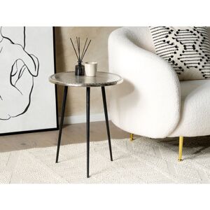 Enhance the decor of your living space with this stylish side table. Handcrafted out of aluminium and iron, the piece boasts high durability and doesn't require daily maintenance to last for many years. Besides being long-lasting, it also features an attention-drawing form, mixing a classic design with a glossy, distressed top, and slim black legs. Thanks to that, it can be matched with a variety of interior decor styles. Fairmont Park Table Top Colour: Silver