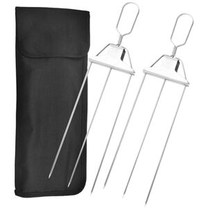 Three- BBQ Fork: Revolutionize your grilling experience with our three-way skewers. With three prongs, you can fit more food onto each skewer, maximizing grilling efficiency and ensuring every bite is packed with flavor. Premium 430 Stainless Steel: Crafted from high-quality 430 stainless steel, our skewers are built to withstand the heat of any grill. and rust-resistant, they're designed to last for countless BBQ seasons to come. Signature Sharpened Tips: Our skewers feature precisely sharpened tips for effortless meat skewering. The tapered design makes it easy to pierce through even the toughest cuts of meat, without posing a risk of edges that could cause harm. Comfortable Handle: Our skewers are equipped with ergonomic handles that provide a comfortable grip, allowing you can flip, rotate, and up delicious grilled with ease. Complete Set: Each set of Grill 3 Way Grill Skewers comes complete with a convenient carrying pouch for easy basting and cleaning. Whether you're grilling or