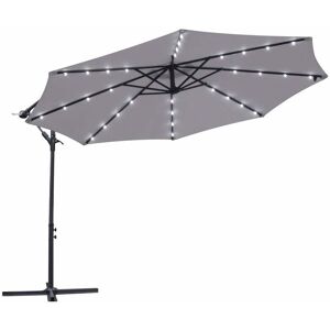 Features: -Stylish LED cantilever banana parasol, allows you to spend more time outside after the sun has disappeared. -32 built-in solar powered LED lights, 4 LED lights on each rib. -Comes with a solar panel to store the energy in a sunny place during the day. -Crank winding mechanism to open and close your parasol conveniently. The inclination angle of the umbrella is adjustable. -Strong solid 1.0mm thick steel tube to bear weights. -Perfect for basking, enjoying sun shining and relaxing leisure. -High quality 200G polyester fabrics and included top vents. Lift slider to extend your parasol outwards. -Cross base included � weights are required but not included. Specification: -Colour: Grey -1.0mm thickness pole, 200g/m2 polyester fabric cover, with air vent -Metal Rib: 8 -Pole: 42/48x1.0 -Parasol Diameter: 3m -Parasol Height: 2.5m Kindly Note: 1. Not suggest left outside under extreme weather condition(eg. above 4 grade wind) as we will not take responsibility for any damage