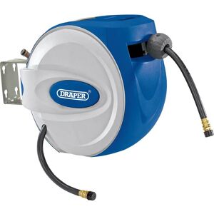 Expert Quality, 3/8" rubber air hose, the latching mechanism provides 20 bar max operating pressure. The airline stops in any position and the reel can be solidly mounted to a ceiling/wall or vehicle. (note; does not have 180º bracket). Features and Benefits • Expert Quality • Rubber hose providing greater flexibility in cold conditions • 20bar/300psi • Slow return function for user safety • Stops at any position for user comfort • Wall mounting on 180° swivel bracket Specifications Hose Connection: 1/4 BSP thread Hose Size: 3/8" Max Working/Burst Pressure: 20 bar (300psi) Operating Temperature: -5 to 45°C Contents 1 x Retractable Air Hose Reel, 15m