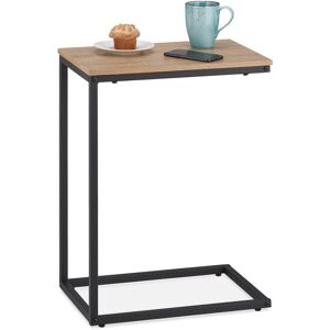 Relaxdays C-shaped side table with storage top and shelf, HWD 60 x 55 x 36 cm, for sofa & bed, metal & MDF, brown/black