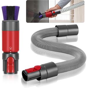 ✅【COMPATIBLE MODELS】Dust Brush + Extendable Hose Extension, Compatible with Dyson V7 V8 V10 V11 V15 SV10 SV11 SV12 SV14 SV15 SV16 SV17 SV22 SV23 SV29 Vacuum Cleaner Parts, Ultra-fine PBT Bristles for Fine Surfaces. Not suitable for V6 and DC models; Not suitable for Animal 2 and Animal 3 models. ✅【NO SCRATCH VACUUMING BRUSH】Anti-scratch brush for Dyson captures fine dust particles in every corner, soft and delicate. Cleaning without leaving scratches on the surface. The dust brush head for Dyson is designed to clean surfaces that need protection. ✅【LONG EXTENDABLE HOSE】The flexible extension hose can be extended up to 150 cm. It allows you to cover more cleaning areas. Combined with the anti-scratch dusting brush, it is perfect for cleaning sofas, carpets, cars and other corners. Maintains screens, keyboards, glass and other scratch-prone surfaces. ✅【EASY TO INSTALL AND USE】The anti-scratch brush for dyson vacuum cleaner kit easily attaches to your vacuum cleaner to ensure effortless