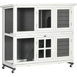 Need a safe home for small pets? This spacious PawHut rabbit hutch has it all. Perfect for rabbits, guinea pigs and other similar sized animals, they have an elevated house to relax in private, whilst the run, surrounded by steel wire for safety, is a large space for running, hopping and playing. Lockable doors and a slide-out tray provide easy access for cleaning, so their space stays hygienic. Finished with a wooden structure made for indoor use, it's a sturdy and safe space for pets to enjoy. Specifications: - Colour: Light Grey - Material: Fir wood - Overall Dimension: 151.5L x 106W x 97Hcm - Living House Dimension: 46L x 40W x 56Hcm, Door Size: 34L x 27Hcm - Run Box: 100L x 46W x 41Hcm, Door Size: 34L x 33Hcm - Fenced Area: 100L x 102W x 45Hcm, Door Size: 45L x 39Hcm - Tray Size: 44L x 34W x 4Hcm - Suitable for 2-3 rabbits - Item Label: D51-358V00LG NOTE: For indoor use, customers need to apply waterproof paint for outdoor use Features: ● Solid fir wood frame ● Closed and