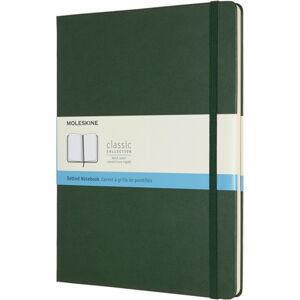 This Moleskine Hardcover Extra Large Dotted Myrtle Green Not hasrounded corners and an elastic closure.Featuring 192 ivory-coloured acid-free70gsm pages, thread bound, and an expandable inner pocket made of cardboardand cloth.Includes a ribbon bookmark, an 'in case of loss' notice, and aremovable leaflet with the history of Moleskine.
