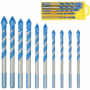 Triangle Drill Bit Set- It comes with 10pcs drill bits along with two small boxes, easy to carry and organize. Includes 4 different sizes (4 x 6mm, 2 x 8mm, 2 x 10mm, 2 x 12mm), enough to meet your different needs. Durable & Sturdy- Our tungsten drill bit made of high quality hard metal, good abrasion resistance and extreme hardness. The carbide tip is strong and easily penetrates all different materials. Wide Application- High precision for centering drilling, these porcelain drill bits are perfect for drilling holes in glass, tiles, tiles, mirror, wood, ceramics, marble, brick walls and other hard and brittle materials. Special Design- The triangle drill bits with U-type housing design, for drilling remove dust quickly , without leaving any smudges. 3-flats shank drill bit allows easy grip and to be held firmly. Easy to use- Can be installed in most general electric hand drill and bench drill, all drill bits are placed at the storage box for a quick change.