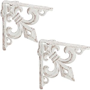 Do you like shelves that not only serve their purpose but also add a special touch to your walls? Then these cast iron shelf brackets in a rustic shabby chic style are the perfect choice. You can mount various shelf boards on the wall using these angle brackets to showcase books, decorative items, and more. The decorative lily ornament serves as a striking focal point, enhancing the nostalgic vintage charm of the brackets. Antique shelf brackets, set of 6, in detail - Dimensions H x W x D: approx. 14.5 x 3.5 x 14.5 cm - Weight per bracket: approx. 450 g - Max. load capacity per set of 2: 15 kg - Material: cast iron - Colour: brown Decorative shelf supports for the wall - Versatile mounting of different shelf boards - Rustic antique style as a distinctive eye-catcher - Decoratively adorned with an opulent lily ornament - 3 drill holes for both wall and shelf - Vintage design for nostalgic charm on your wall Included in Delivery - 6x angle shelf brackets (without mounting material)