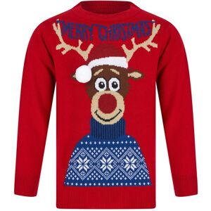 Let your jumper do the talking this festive period! Your little one will love wearing this Christmas jumper over the festive season. The Xmas sweater features a reindeer with the words "Merry Christmas" hanging between its antlers, its own festive jumper and a 3D white pom pom on the end of his santa hat. The soft knit, crew neck Christmas jumper for kids is available in Red or Ink and in child sizes from age 4 to 12. Perfect for family seasonal celebrations, Christmas Jumper Day and a great gift idea! Features: •Fabulous Merry Christmas reindeer design • Soft knit fabric with crew neck • Choice of Red or Blue • Material: 100% Acrylic • Machine washable at 30°C • Available in child sizes from age 4 to 12.