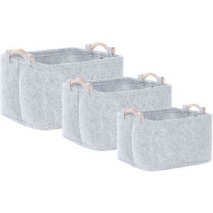 Handmade Storage Basket Set. Ensure that your home accessories and trinkets are well-organised in a wardrobe or on a bookcase with this set of three baskets. The pieces are handmade from high-quality felt, making them lightweight and soft to the touch. Thanks to the wooden handles, you can easily move the baskets around and because of the three different sizes, you can use them in multiple ways. Details: Product Type: Small Bathroom Storage Style: Scandinavian General Color: Grey Shade: Light Grey Material Type: Fabric Main Material: Felt Additional Material: Beechwood Material Composition: 100% Polyester Shape: Rectangular Handmade: Yes Dimensions: Depth: 25/29/31 cm Width: 32/35/38 cm Height: 21/23/25 cm Overall Dimensions: 38x31x25 Weight: 1 kg Offer Includes: 3 x Basket Key Features: Hand-Crafted with High Attention to Detail, Perfect for Both a Bedroom and a Living Room, Minimalistic, Scandinavian Style, Great Addition to a Nursery or Child's Bedroom, Equipped with Handles,