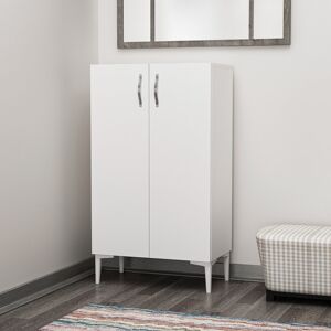 Cabinet for hallway, living room, bathroom, and kitchen storage cabinet unit with double doors. Designed with an attractive shape to utilize with four closed shelves storage cupboard. Giving you plenty of room for storing shoes, trainers and sandals, cutlery, towels, clothes, etc. Give your living room a personal touch: the exterior shelves are perfect for displaying decorative items and adding a personal touch to the cabinet. Ideal for your living room, hallway, this tall cabinet takes up little space and allows you to store your space. 17 Stories