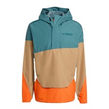 When the clouds build and rain arrives, this adidas Terrex anorak keeps you dry and comfortable.CLIMAPROOF locks out weather and helps sweat escape for dry, comfortable and unrestricted performance.The 2.5-layer construction is lighter than two or three-layer designs for a shell that stows easily in a day pack and still provides full coverage in the rain.A drawcord-adjustable hood with a visor adds coverage and zip pockets keep the small stuff secure.It´s cut for a loose fit with plenty of room to move and layer.CLIMAPROOF locks out storms with waterproof materials and design to block harsh weather.Stay free from wind with wind-resistant and breathable material for extra comfort.Engineered features boost protection and breathability.This product is made with at least 70% recycled materials.By reusing materials that have already been created, we help to reduce waste and our reliance on finite resources and reduce the footprint of the products we make.A lightweight rain jacket for hiking made with CLIMAPROOF to keep you dry, protected and free to adventure.FEATURES:-Loose fit.-Half-zip with adjustable hood.-Outer:100% polyester (recycled). Inner:100% thermoplastic elastomer (75% recycled).-CLIMAPROOF.-Kangaroo pocket with zipped side entry.-Hook-and-loop adjustable cuffs.-Bungee-adjustable hem.Technology Concept:- CLIMAPROOF.