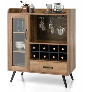 Upgrade your rooms decoration with this beautiful mid-century modern buffet cabinet, featuring a natural wood finish that adds a touch of rustic elegance. Measuring 150cm wide, its flat and spacious tabletop provides ample space for all your ornaments or a flat screen TV. Say goodbye to clutter as our versatile storage cabinet offers a range of storage options, including 5 shelves and 2 drawers for all your kitchen supplies. And the sliding tambour doors with knobs give you a good experience. With a built-in cable management hole, organizing wires has never been easier. Plus, it comes with adjustable foot pad and anti-tipping kits for added stability and safety. Elevate your viewing experience with our sleek and functional accent cabinet - Enjoy the perfect combination of style and practicality! Costway Wooden Buffet Cabinet Storage Sideboard Bar Station w/ Sliding Tambour Doors in White