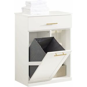Modern design laundry cabinet storage cabinet would be suitable for a variety of locations, like bathroom, laundry room, utility room, etc. It features a cupboard with concealed laundry basket making it a practical addition to any bathroom. The laundry basket can be taken out completely as a great storage solution. The drawer and 2 storage compartments provide ample storage space for your bathroom essentials. The top of the cabinet is ideal for storing something you might need in reach, or some items you want to display. Coming with anti-tipping device, ensuring great stability and safety. Space saving storage solution that will help keep your bathroom tidy and organized. Fashionable appearance, so it sure fit perfectly with any style of decor. Product Details Material: MDF. Dimensions: W66 x D37 x H95cm. Weight: 26.5kg. Load capacity: 50kg. Item comes in a flat pack and requires self-assembly. Detailed instructions supplied. The decorative elements are not included in the delivery.