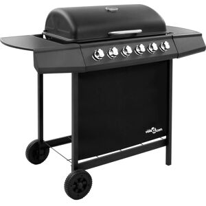 This gas BBQ grill, with 6 burners, is ideal for creating an outdoor feast for your family and friends. It will make your outdoor cooking experience sizzle, effectively turning your backyard into a second kitchen! The gas grill features a stylish and functional design. It has a large cooking surface and a heavy-duty hood with a built-in thermometer which accurately displays the cooking temperature. Side tables offer additional workspace for making sauces or your favourite side dishes. A removable grease drip container is also included, which is easy to clean. Made of heavy-duty materials, the grill is very durable. The shelf underneath provides large space to store cookware and utensils. Thanks to the 2 sturdy castors, the grill is easy to move around. Delivery also includes a BBQ cover to protect the grill from rain and dust. To connect the barbecue to the gas cylinder, a gas hose and a proper pressure regulator are required, which are not included in delivery. vidaXL Finish: Silver