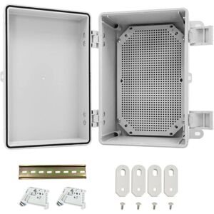 Applications Outdoor Wireless Communication Systems Wall Mount Lighting Controls Security Systems Test Equipment< /li> DIY projects etc. Material: ABS Finish: plain Dimensions: 300x200x170mm < /p> 400x300x170mm 500x400x180mm IP Rating: IP65 Color: Light Gray Package Contents: electrical box, mounting panel, 4 screws for metal panel, 4 wall brackets ABS electrical box The electrical box is made of high quality ABS. The precise lock design, high-strength hinges, sealing strips and IP65 rating are all used to protect your plug-ins, power cords and other equipment from the influence of the weather. Therefore, to ensure the circuit protected from liquids and corrosion. IP65 rated protection Stainless steel latch Good insulating properties Mechanical resistance Temperature resistance
