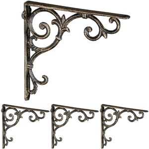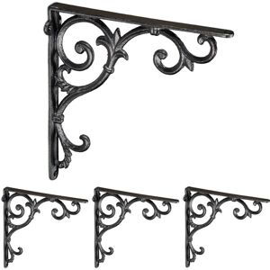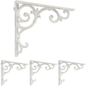 Do you like shelves that not only dutifully do their job, but also add special accents to your walls? Then the two cast-iron shelf brackets in a rustic Shabby Chic look are just the right choice. The strut that connects the long side with the short side provides additional stability as well as something to lok at. It is designed in a fancy chain design, which makes for an industrial style worth looking at and is guaranteed to catch the eye. Shelf angle cast iron set of 2 in detail - Dimensions H x W x D: approx. 18 x 4 x 21.5 cm - Weight per holder: approx. 0.4 kg - Max. load per set: 15 kg - Material: Cast iron - Various colours Decorative shelf supports for the wall - Various shelves can be attached flexibly - Rustic antique style as a special eye-catcher - Struts in chain design spread industrial flair - 3 drill holes for wall and shelf each - Vintage design for nostalgic charm on the wall Included in delivery - 2x angled shelf supports (without assembly material) - Decorative