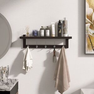This beautiful hanger is thoughtfully designed with baffle to safely hold your key, wallet, plant, candle, and can be used as a display rack for picture frame, envelope, decorative letter. 5 dual metal hooks to hang hat, coat, jacket or bag, so all your essentials are neatly organized in one place and at your fingertips.In addition to being used as a coat rack in the entrance, hallway, and bedroom, this nice floating organizer rack can also be used to store bathrobe, towel, and toiletries in the bathroom; dishcloth, coffee mug, cup, or drying kitchen utensil in the kitchen; display plant, flower, and organize garden tool in the garden, etc. Brayden Studio Colour: Black
