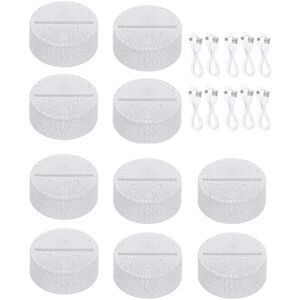 1. Made of high-quality ABS, high-quality and . 2. With touch sensor switch, simple operation. 3. Multicolor LED light, Create romantic atmosphere. 4. Two power supply methods, battery charging or USB charging. 5. Beautiful decorations for bedrooms, living rooms, bars, shops, restaurants, offices. Light color: 7 colors Power: 0.5W Luminous: 10 Light source: 8PCS LED beads Size: diameter 8.5cm, height 4cm, thickness 4mm, hole length 7cm Card slot size: 72x4.5x17mm, suitable for 3.8-4mm acrylic Power supply: DC 5V or 3 * AA batteries(not include) Light operation: Switch method: touch switch (long for 3 seconds to turn off) Bright mode: Touch the switch to change the color to always bright. Colorful : the switch 8 times to start changing colors gradually. 3D effect: insert acrylic board at the seam (acrylic board not included) Colour:White Material:ABS Package Contents: 10 x Night Light base 10 x USB Cable Only the above package content, other products are not included. Note: Light