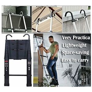 5m/16.4FT Extendable Ladder Telescopic Folding Telescopic Ladder Features: --Constructed from high quality and polished aluminium.--Constructed from high quality and polished aluminium. --High quality foldable telescopic style ladder. --Foldable design, convenient to use and easy to carry around. --Lightweight yet durable and compact for easy storage and transportation. --Easily stored in everywhere when ladder is closed. --Quickly and easily extends rung by rung to the required height. --Safe and compact. The ladder comes with high quality rubber feet for extra stability and grip and stable locking key between two neighbouring steps to avoid bumping and friction. --Black anti-slip rubber sleeve on the bottom of ladder step and stable locking key between two neighboring steps to avoid bumping and friction -- Approved by safety test EN131 standard for household ladders and is CE registered. 5M Telescopic Straight Ladder: Material: Aluminium Color: Black Number of Ladder Step: 13 Step