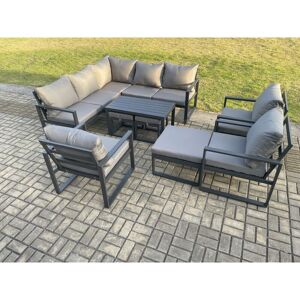 This aluminium Outdoor garden furniture set can be used both indoors and outdoors,with high quality aluminium Frame construction for sturdiness and long lasting. it can also be placed on the patio or balcony,The design of this patio lounge sofa set is a perfect blend of country chic and modern minimalism, adding an elegant touch to your house. Set Dimensions: • 1 x Left Sofa with single armrest: 125W x 70D x 78H cm • 1 x Right Sofa with single armrest: 125W x 70D x 78H cm • 1 x Corner Sofa:70L x 70W x 78H cm • 3 x Chair Size: 74L x 70W x 78H cm • 1 x Big footstool :60L x 60W x 35H cm • 2 x Fully Assembled Stool Size: 40L x 40W x 36H CM • 1 x Oblong Coffee Table:97L x 52W x 51H Dark grey powder coated with dark grey fabric .Color may vary little due to light or monitor .we are unable to return the item due to color problem .please contact us before purchase if you have requirement on color saturation. Items Comes Flat Pack And Easy Assemble, Alloy Aluminium Frame With Powder Coating To