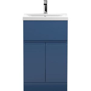 Rapture Floor Standing Vanity Basin Unit with Mid-Edge Ceramic Basin (Tap Not Included), 500mm - Satin Blue - Balterley The Balterley Rapture vanity basin unit combines premium quality with a sleek, square handleless design that enhances any modern bathroom. Ideal for busy households, its floor standing build offers generous storage to keep essentials neatly organized. The Blue finish perfectly complements the white ceramic basin, manufactured from high quality vitreous china. Featuring soft-close doors and drawers for quiet convenience, the unit is supplied rigid for hassle-free installation. Tap and waste are not included, giving you the flexibility to customize the finish to your bathroom style. Product Highlights: Satin Blue Finish: Bold satin blue finish brings a rich, modern pop of colour with a soft surface that’s stylish, durable, and easy to maintain. Mid-edge ceramic basin: Refined mid-edge design with flat borders and a sloped bowl, offering generous depth and one tap hole