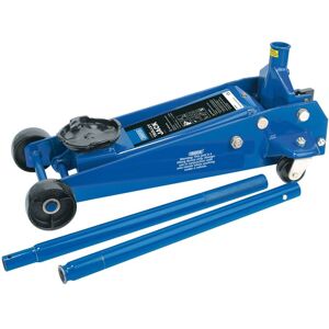 Description This is a heavy-duty trolley jack designed for automotive and home workshop use. It provides reliable lifting capacity and safety features for secure operation. Suitable for professional mechanics or DIY enthusiasts, it ensures efficient and safe vehicle maintenance. Specifications Capacity: 3 tonnes (3000 kg) Lifting range: 135 mm to 505 mm Overall size: 720 mm x 345 mm x 185 mm Weight: 40 kg Compatibility and Accessories Compatible with most vehicles requiring a 3-tonne lift Includes a two-piece handle and a cog-type release mechanism Fitted with rear swivelling castors for easier maneuverability Installation Place the jack on a flat, stable surface Ensure the safety valve is functional before use Attach the handle securely to operate the lift Usage Position the saddle under the vehicle's lifting point Use the handle to pump and raise the vehicle to the desired height Engage safety features and ensure stability before working underneath Other Information Designed with