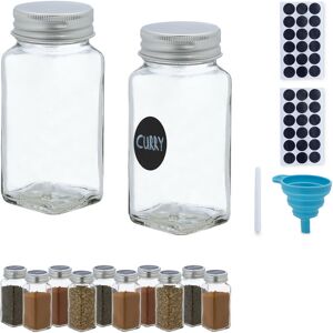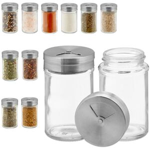 Create orderliness in your spice cupboard. This set ensures a uniform look. You can fill up 12 shakers with curry powder, paprika powder, salt, pepper and more. All spice containers have a lid with a rotating attachment through which you can select one of the 3 functions. With these spice jars, you will always have your favourite herbs and spices to hand when cooking and can use them directly for seasoning. The quantity is visible at all times, so you won't risk running out either. Spice shaker at a glance - Dimensions: approx. 5 x 8.5 cm (WxH)- Volume: approx. 90 ml- Weight per glass: approx. 130 g- Material: glass, stainless steel, plastic- Available in various colours Set of 12 spice containers - Create order and uniformity- Thanks to the screw-on lid, the jars are easily refillable- Quantity is visible so no more running out- Fine, medium or coarse shaker functions- Modern, classic design Included in delivery - 12x shakers in colour of your choice- Decorative items or spices are