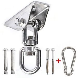 360° Rotating Design: 360° rotating mounting hook with tab for easy opening. Innovative and patented design. High quality, anti-corrosion: 304 stainless steel rings are made of high-quality raw materials. No rust, corrosion resistance, high hardness. Safe and sturdy: Heavy duty commercial grade swing hooks are designed for use by children and adults and are designed for residential use and with a rated weight of 500 kg, they are safe. Easy to install: We have pre-drilled two holes for bolting to wooden beams or concrete. Includes 2 concrete anchors and 2 hex bolts. Pre-drilled expansion screws for concrete applications install in just minutes. Versatile: Ideal as a wall hook for slingshot trainers, suspension trainers, punching bags, gym, yoga, indoor or outdoor swings. 360° Rotatable Design: 360° rotating mounting hook with tab for easy opening. Innovative and patented design. High quality, anti-corrosion: 304 stainless steel rings are made of high-quality raw materials. No rust,