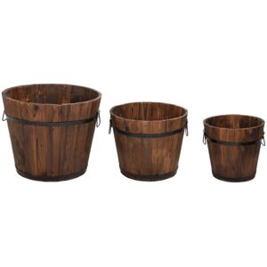 Fill this wooden bucket planter set with colour and variety to add a stunning look to your planting project and brighten up your home! Solid fir wood: Solid fir wood is a beautiful natural material. Fir wood doesn't dry out or warp when exposed to moisture. Drainage hole: The flower pots come with drainage holes at the bottom, allowing excess water to run out, promoting healthy soil and ensuring strong root growth. Metal handles: Features 2 metal handles, each garden planter is easy to lift and carry. Wide applications: Use these garden pots to nurture decorative plants and flowers, or to grow vegetables and herbs for your spring salad. Material: Solid fir wood with burned look, metal Dimensions (large): Ø21 x 17 cm (Diameter x H) Dimensions (medium): Ø17.5 x 14.5 cm (Diameter x H) Dimensions (small): Ø13.5 x 12 cm (Diameter x H) Delivery contains: 1 x Bucket planter (big) 1 x Bucket planter (medium) 1 x Bucket planter (small) SKU: 363362 Do not use this item if any components are
